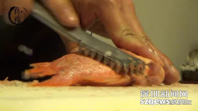 將紅寶石打鱗去除內(nèi)臟。