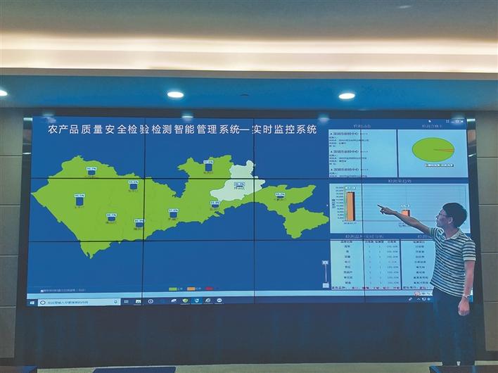 對(duì)于農(nóng)產(chǎn)品質(zhì)量安全檢驗(yàn)檢測(cè)智能管理系統(tǒng)將來(lái)的功能設(shè)想,農(nóng)檢中心工作人員也向記者進(jìn)行了模擬展示,整個(gè)智能管理系統(tǒng)將會(huì)有“數(shù)據(jù)查詢”、“抽檢動(dòng)態(tài)”、“實(shí)時(shí)展示”等多種功能。在“實(shí)時(shí)展示”中,記者看到屏幕上出現(xiàn)了深圳十區(qū)(新區(qū))的電子地圖,每個(gè)區(qū)(新區(qū))的農(nóng)產(chǎn)品檢測(cè)合格率都可以按照年度、月度、每天進(jìn)行顯示,不僅如此,每個(gè)區(qū)(新區(qū))所有街道的檢測(cè)合格率也都能在電子地圖上展現(xiàn)出來(lái)。
