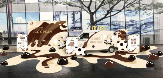 本次喜茶“波波冰淇淋巴士”全面升級,延續(xù)了時尚的波點(diǎn)元素,融入冰淇淋流質(zhì)爽滑的視覺形象,讓整個快閃店在炎熱的夏天也透著一絲絲涼意。現(xiàn)場還增加了波波冰淇淋背景墻與地貼,烘托了夏天的歡樂氛圍,為消費(fèi)者打造更有趣味性的互動環(huán)境。