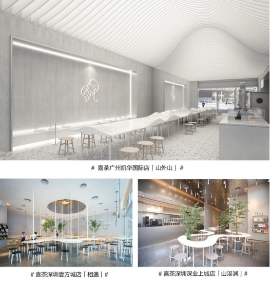 喜茶山外山是“白日夢計劃”第三家門店,與首家“相遇”,第二家“山溪澗”在設計理念上一脈相承,結合中國古典山水的詩意和禪意,用現(xiàn)代化的設計表現(xiàn)形式,探討空間中人與人互動的最佳模式和距離。