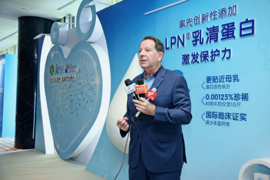 隨后他在會上做了合生元營養(yǎng)與護理研究院關于“母乳營養(yǎng)研究成果”的分享,重點介紹了BINC在母乳研究關于LPN?乳清蛋白活性成分[1]、SN-2 PLUS和母乳營養(yǎng)個性化檢測的成果。據(jù)Patrice Malard博士介紹,他們聯(lián)合了母乳營養(yǎng)與乳蛋白研究的國際頂級機構共同完成了中國首例LPN?乳清蛋白活性成分的中國嬰兒臨床研究,取得了可喜的研究成果。結果顯示:LPN?乳清蛋白能幫助調節(jié)嬰兒的細胞因子水平,減少體溫異常[2,3,4]。對此,汪之頊教授對這類活性蛋白的研究成果表示贊賞,認為如果能將這些母乳研究領域的重要成果充分應用到嬰幼兒營養(yǎng)產(chǎn)品,是一件非常有意義的事。