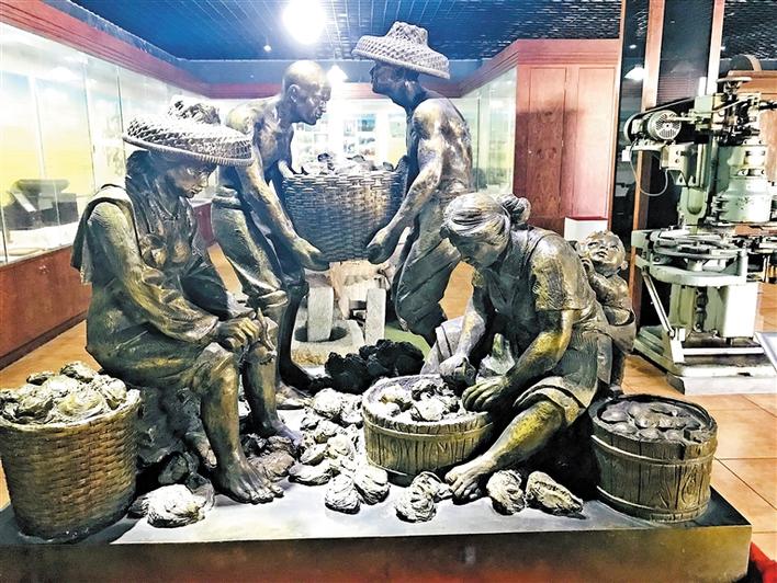 “茫茫大海接藍(lán)天,水下盡是養(yǎng)蠔田。阡陌田疇何界示,叔伯遙指高山巔?!辈┪镳^里這首關(guān)于“打山口”的詩歌深深吸引了記者。在長期的發(fā)展過程中,沙井蠔業(yè)逐步形成了打山口、流水定作息、集體協(xié)作等生產(chǎn)習(xí)俗和蠔殼砌墻、上香禮拜天后等生活習(xí)俗,有一整套成熟的養(yǎng)殖和加工技術(shù),形成了種蠔、挒蠔、搬蠔、撒蠔、屯蠔、撲蠔、撿蠔、開蠔等傳統(tǒng)工序。沙井蠔民生產(chǎn)習(xí)俗,世代相傳至今,具有一定的文化價(jià)值和社會價(jià)值,現(xiàn)已被列入深圳市非物質(zhì)文化遺產(chǎn)名錄。