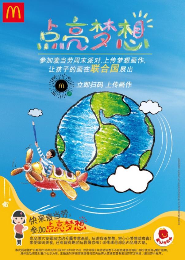 深圳新聞網(wǎng)2019 年4月1日訊 3月1日起, 麥當(dāng)勞在全國(guó)超過(guò)1000家餐廳推出麥當(dāng)勞“點(diǎn)亮夢(mèng)想”主題派對(duì),為孩子們打造夢(mèng)想加油站?;顒?dòng)以“夢(mèng)想”為主題,以繪畫為載體,鼓勵(lì)孩子們秀出才華展現(xiàn)夢(mèng)想?;顒?dòng)將征選30位兒童的畫作在聯(lián)合國(guó)展出。