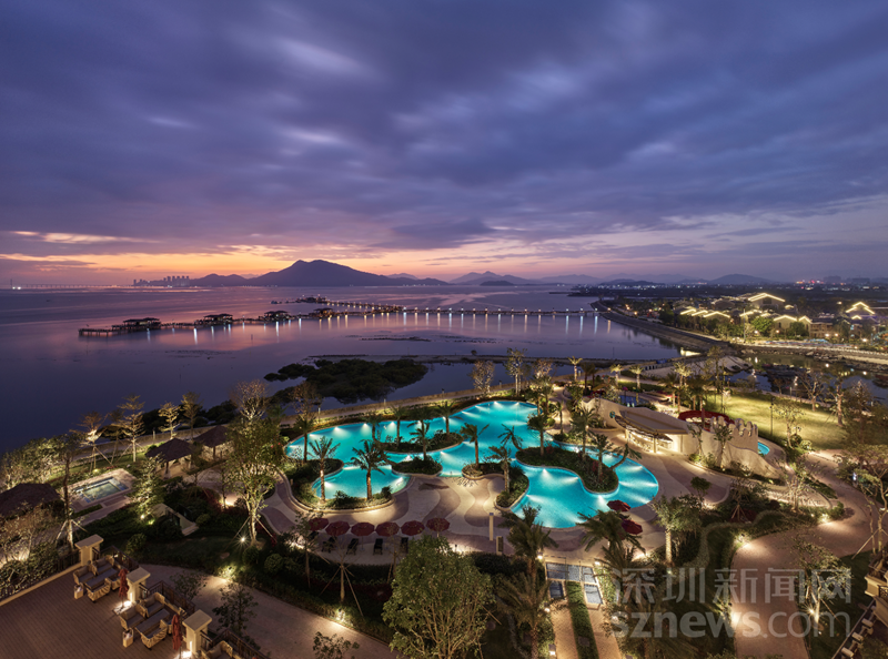家長可能更關(guān)心酒店的親子活動設(shè)施。記者在這里看到,酒店有獨(dú)具特色的兒童天地、戶外主題兒童樂園、多樣電子游戲設(shè)備的玩咖及淘氣堡,為孩子提供專用寬敞的游戲空間和每天豐富的親子活動。閑暇之余,一家大小可縱身躍入泳池盡情暢玩一番,包含家庭泳池、兒童游泳池、水上娛樂池,及按摩池。傍晚時分,還可漫步在海上棧橋、生態(tài)趣樂園、水云天古鎮(zhèn),感受醉美夕陽。