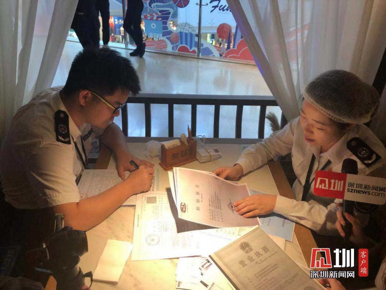 記者跟隨執(zhí)法人員一行來到位于光明區(qū)馬田街道的大仟里商業(yè)廣場,由志愿者代表現(xiàn)場隨機(jī)抽選兩家餐廳。此次光明市場監(jiān)管局采取了交叉檢查的方式,根據(jù)《深圳市餐飲服務(wù)食品安全量化檢查表》對兩家餐飲單位進(jìn)行詳細(xì)檢查。