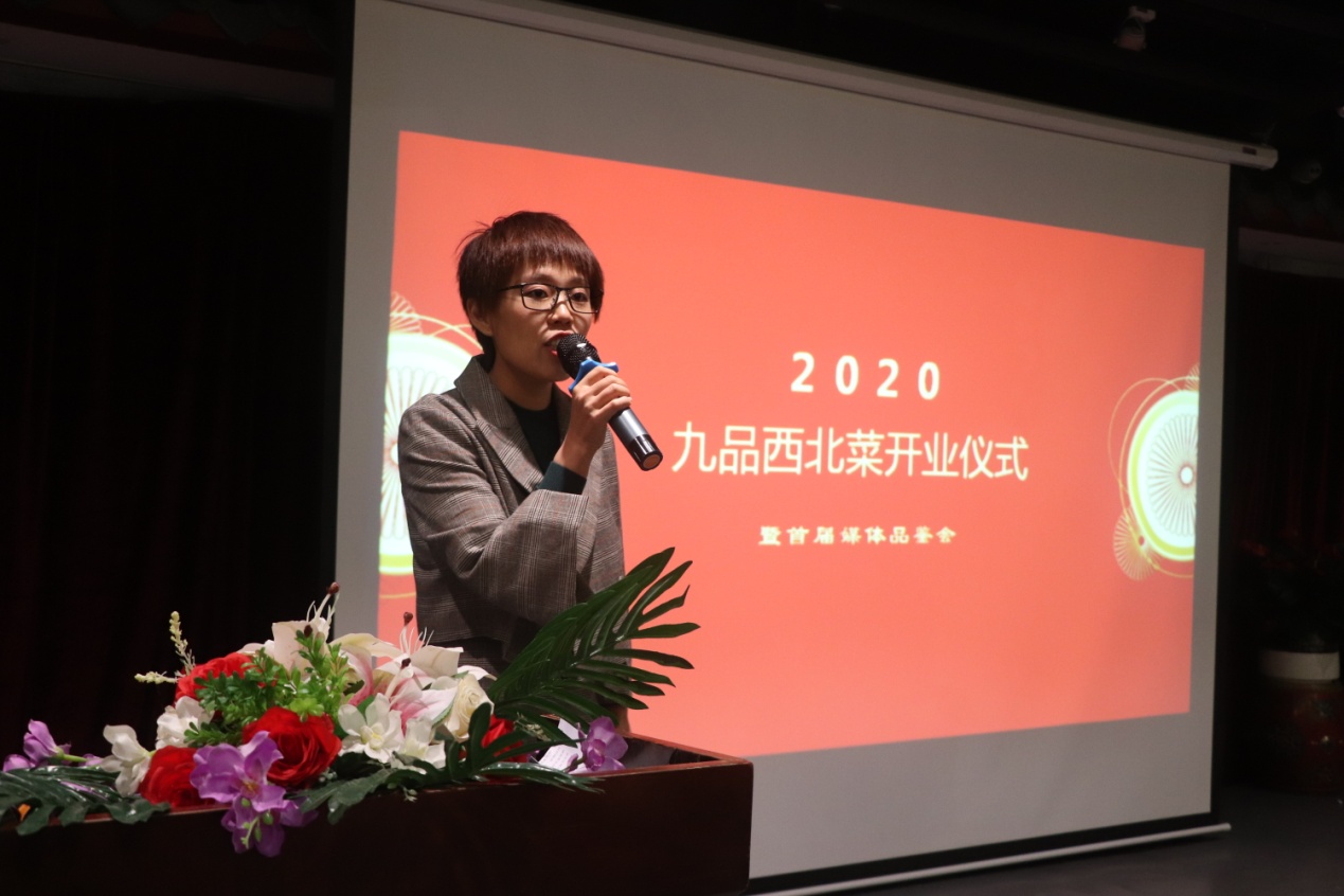 本屆媒體品鑒會(huì)由“九品西北菜”創(chuàng)始人兼出品總監(jiān)賈淑萍女士歡迎致辭,并且分享了關(guān)于品牌創(chuàng)始背后的故事?!熬牌肺鞅辈恕笔莾A金河建材集團(tuán)之力,萃取20多年用心精華,嚴(yán)格把控菜品供應(yīng)鏈,歷史20年,打造出來的新品牌。