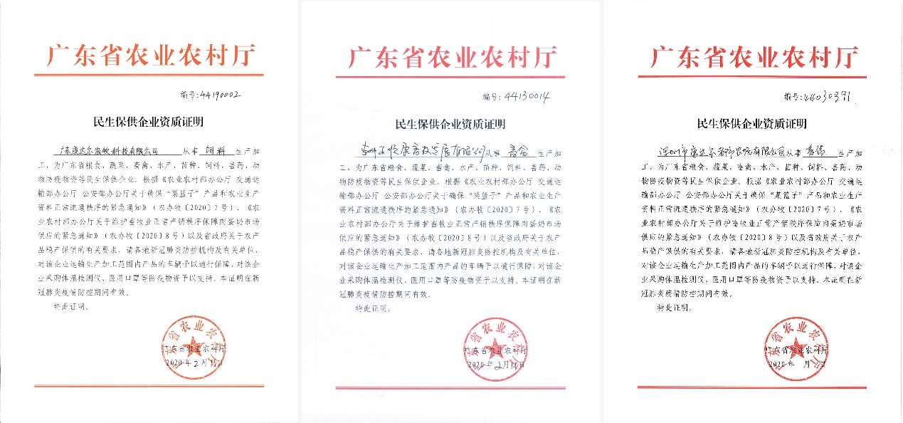 見圳客戶端·深圳新聞網(wǎng)2020年2月13日訊 農(nóng)產(chǎn)品是群眾生活必需品,農(nóng)業(yè)生產(chǎn)資料是農(nóng)業(yè)生產(chǎn)的必需物資。2020年2月11日-12日,康達(dá)爾集團(tuán)農(nóng)業(yè)板塊三大公司廣東康達(dá)爾農(nóng)牧科技有限公司、惠州正順康畜牧發(fā)展有限公司、深圳市康達(dá)爾都市農(nóng)場有限公司先后獲批“民生保供企業(yè)”資質(zhì)證明,這將非常有利于各企業(yè)開展農(nóng)產(chǎn)品和農(nóng)業(yè)生產(chǎn)資料的保供工作,也意味著康達(dá)爾集團(tuán)在這場防疫保供攻堅(jiān)戰(zhàn)中所發(fā)揮的作用獲得了高度的肯定。