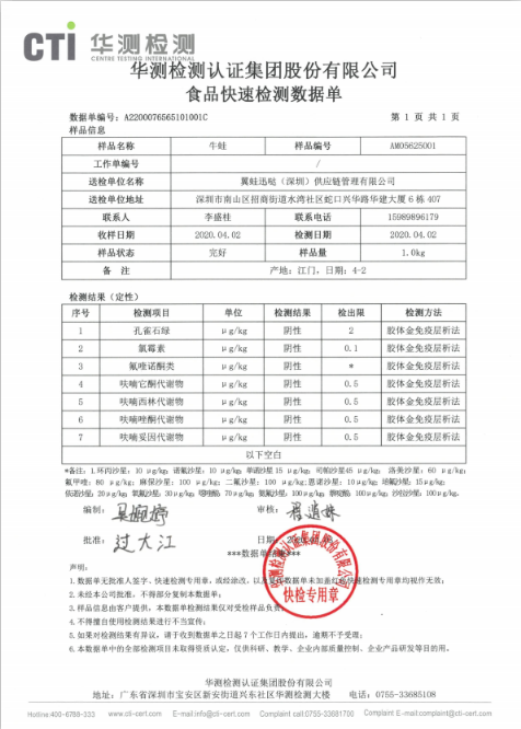 蛙來噠創(chuàng)始人羅清表示:對(duì)于食品安全管理,蛙來噠嚴(yán)格要求牛蛙來貨供應(yīng)商,每批來貨提供合格的第三方檢測(cè)報(bào)告,經(jīng)歷2019年10月的抽檢之后,我們?cè)黾恿藖碡浐蟮脑僖淮蔚谌剿蜋z,并保證每批貨都送檢,以此保證食品安全質(zhì)量,并將繼續(xù)升級(jí)自我檢測(cè)標(biāo)準(zhǔn)。