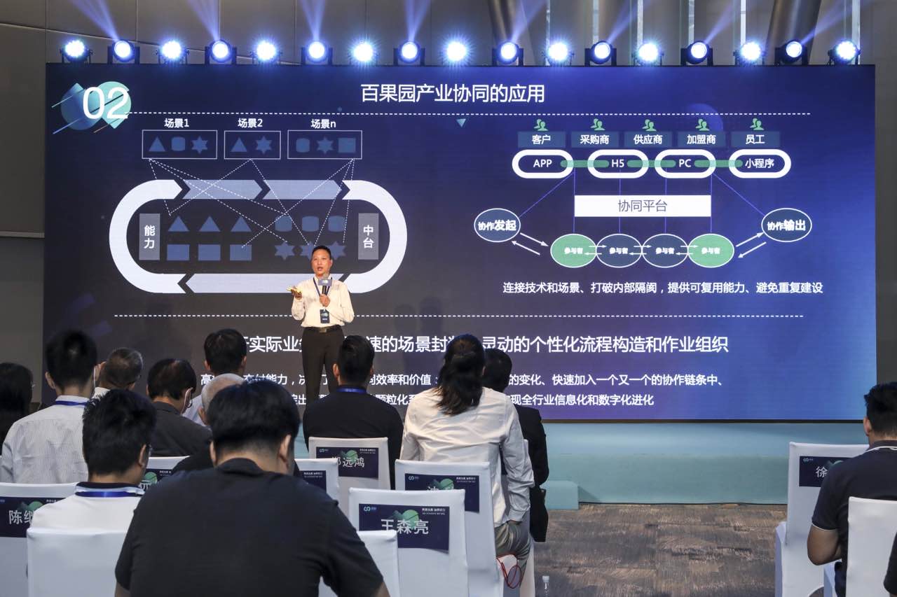 “雁陣”協(xié)同平臺(tái)通過(guò)SaaS、APaaS組建和iPaaS,將場(chǎng)景應(yīng)用和任務(wù)驅(qū)動(dòng)完美地連接在了一起。百果園集團(tuán)副總裁徐永劍表示,“連接型”才是以前傳統(tǒng)OP軟件時(shí)代的弱項(xiàng),是新SaaS產(chǎn)品的甜區(qū)。作為“雁陣”協(xié)同平臺(tái)上的業(yè)務(wù)生態(tài)之一“百果園”,便是將其在生鮮領(lǐng)域多年來(lái)的IT生態(tài)能力進(jìn)行開放和共享。