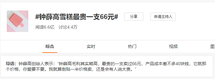 讀特客戶端·深圳新聞網2021年6月16日訊(記者 常軍平)16日下午,因最貴的雪糕賣66元,創(chuàng)始人還表示“愛要不要”上熱搜一事,鐘薛高進行了回應:“我們被惡意剪輯了”。
