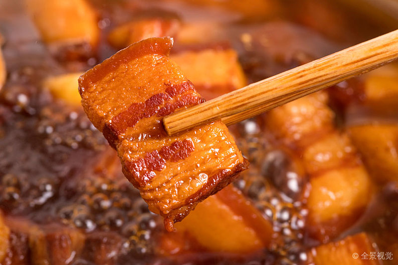 燒鵝外表金黃鮮亮,香氣濃郁,皮香脆可口,肉汁中帶有韌性,在舌尖上流淌。
