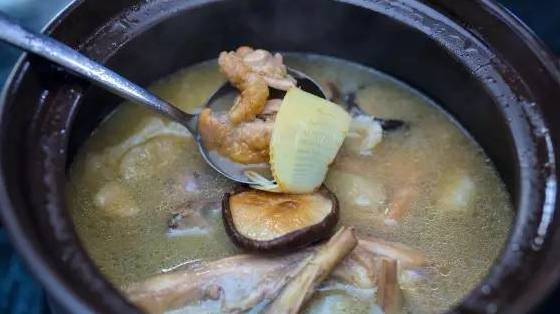 Tips:雞湯燒滾后,將雞湯里面浮出的沫舀出。
