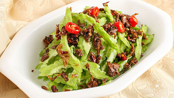 營養(yǎng)搭配創(chuàng)意菜 涼瓜豆角炒魚松