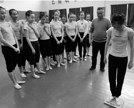 2月21日,記者來到浙江藝術(shù)職業(yè)學(xué)院舞蹈系,看著那個骨瘦如柴的女孩子輕盈地跳上體重秤,顯示是43.6公斤?!疤炖玻亓顺亓?,要跑10圈了!”她說。