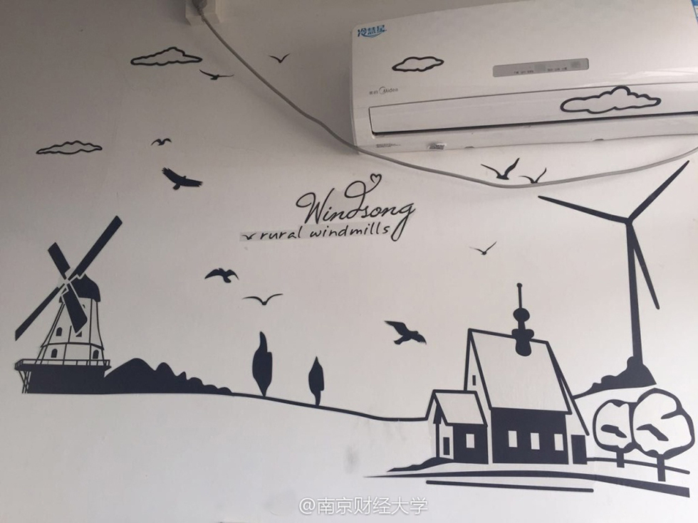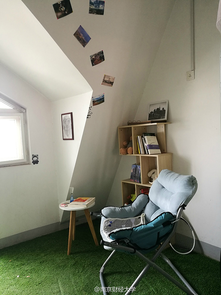 綿綿的草坪、充滿(mǎn)設(shè)計(jì)感的書(shū)架、掛著素描畫(huà)的墻……難以想象這是四個(gè)19歲男生的寢室。南京財(cái)經(jīng)大學(xué)西苑9幢男生宿舍頂樓602寢室,住著4位“世外高人”—— 涂貴平、柯毅、劉以康和廉鎮(zhèn)宇,他們用事實(shí)告訴大家,男生宿舍文藝起來(lái),可絲毫不輸女生。圖/@南京財(cái)經(jīng)大學(xué)