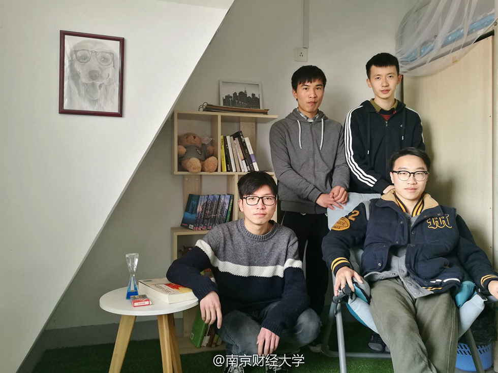 “這四個(gè)孩子風(fēng)格迥異,學(xué)習(xí)成績(jī)也都很好,比如劉以康,績(jī)點(diǎn)4.0,是個(gè)超級(jí)學(xué)霸;廉鎮(zhèn)宇平時(shí)愛(ài)攝影,很活躍……”南京財(cái)經(jīng)大學(xué)外國(guó)語(yǔ)學(xué)院黨委副書(shū)記李慕原笑著介紹,早有耳聞他們宿舍很文藝,今天見(jiàn)到果然名不虛傳,“男生宿舍搞得這么美,我自己都覺(jué)得很有意思,不少女孩子看了圖片也驚嘆說(shuō)要來(lái)好好借鑒?!?/p>