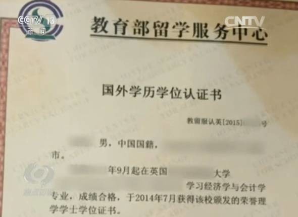 據(jù)央視報道,只要花10萬元錢,不用上學(xué),北京中關(guān)村一家中介公司就能直接給辦理國外某所大學(xué)的畢業(yè)證,并順利通過教育部留學(xué)服務(wù)中心官方認(rèn)證,學(xué)位真實有效。該公司負(fù)責(zé)人稱,他們公司這條線送進(jìn)去的材料,會得到特殊的關(guān)照,平時需要多和認(rèn)證中心的人打好關(guān)系,維持好彼此的“合作”。對此,留學(xué)服務(wù)中心認(rèn)證處負(fù)責(zé)人表示,廉政風(fēng)險任何一個單位都會有,從技術(shù)上可以堵得住,但是如果真是人員這方面出了問題,他們“確確實實沒有辦法”。