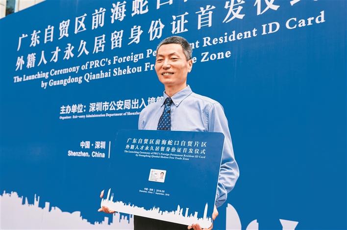 9月4日,深圳市公安局舉行廣東自貿區(qū)前海蛇口自貿片區(qū)外籍人才永久居留身份證首發(fā)儀式,澳大利亞籍華人張威獲發(fā)首張證件,為廣東省首位積分評定的技術人才申請獲得廣東自貿區(qū)外籍人才永久居留身份證。