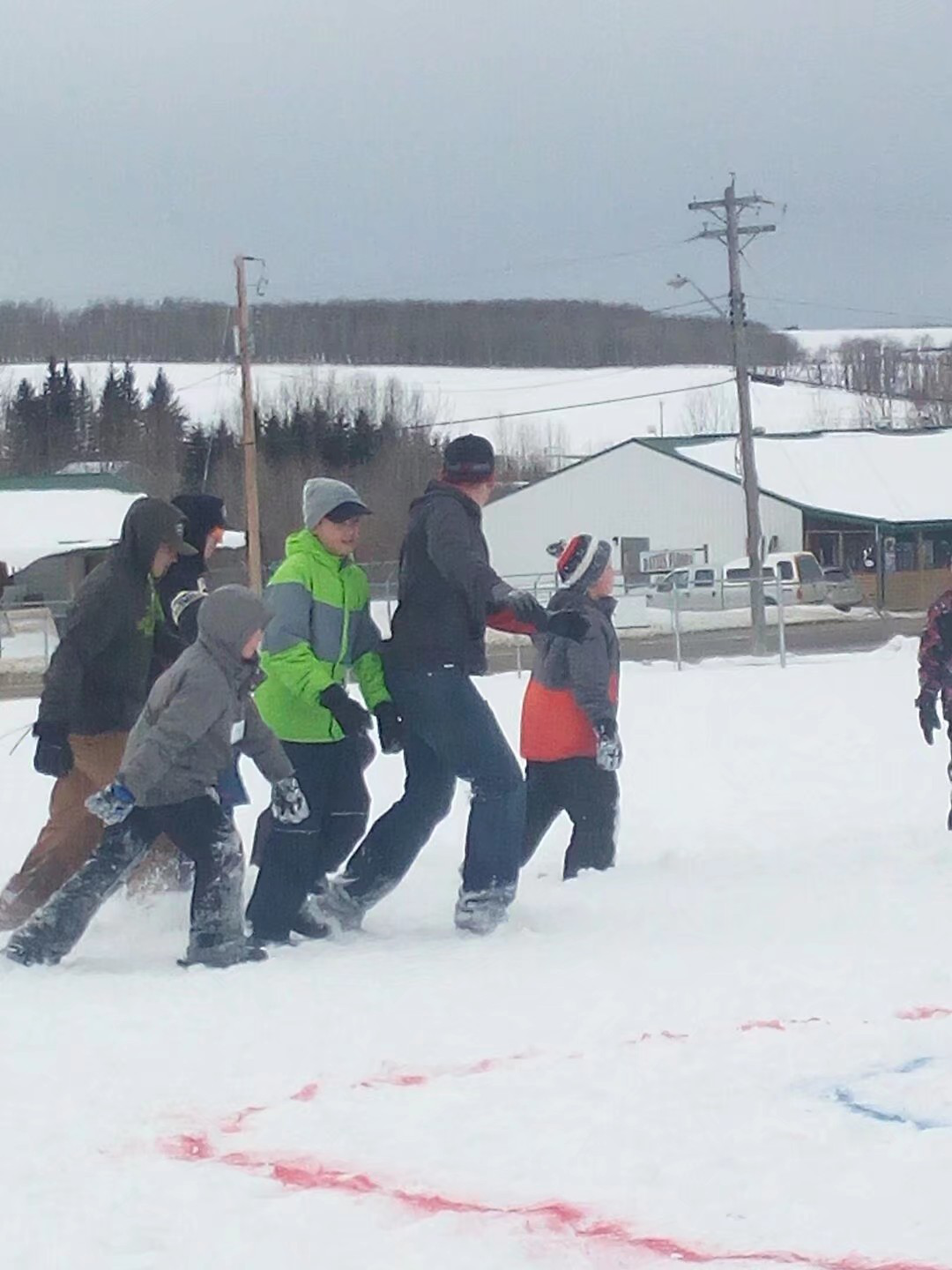 在學校,一望無際的操場上,雪丘一個比一個高,當你站在雪丘的至高點,笨重的校巴就不再是那么大了。喜歡雪的同學們一點也不怕冷。他們在雪地里打球、摔跤、滑雪,還不時地會聽到尖叫聲,原來是同學相互在雪丘上推上推下,開心得不亦樂乎。