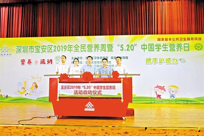 寶安日報5月21日訊 你每天運動夠60分鐘了嗎?每天都有吃蔬菜水果嗎?如今,已有越來越多的人重視營養(yǎng)、運動與人體健康的關(guān)系,每年的5月20日是中國學(xué)生營養(yǎng)日,今年的主題是“營養(yǎng)+運動,攜手護視力”。5月20日下午,寶安區(qū)2019年全民營養(yǎng)周暨“5·20”中國學(xué)生營養(yǎng)日在石巖湖學(xué)校舉行。