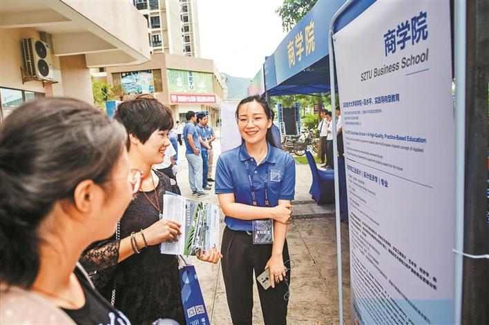 為了使廣大學(xué)生、家長和更好地了解深圳技術(shù)大學(xué)的招生辦學(xué)特色,由深技大各學(xué)院、部門的師生志愿者組成的招生咨詢隊(duì)伍在高溫下以燦爛的笑容、體貼的服務(wù)為考生及家長現(xiàn)場答疑解惑,在咨詢隊(duì)伍中,不乏院長和外籍教授的身影。