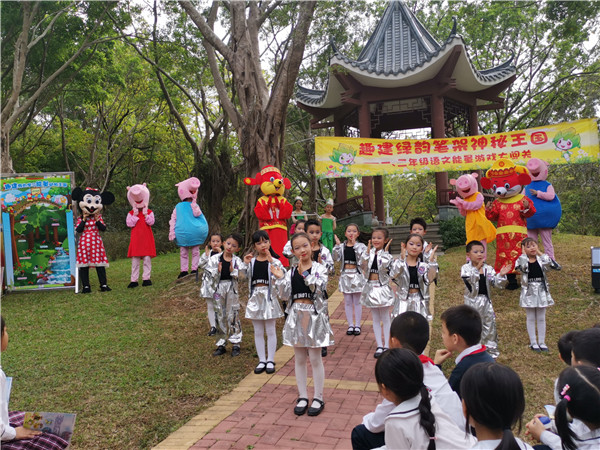 在鳥語相伴下,深圳市學(xué)生文聯(lián)秘書長(zhǎng)謝晨的講話拉開本次活動(dòng)的序幕,他贊揚(yáng)了華新小學(xué)學(xué)生們學(xué)業(yè)上的優(yōu)秀表現(xiàn),肯定本次活動(dòng)寓教于自然的教學(xué)方式,也表達(dá)了多次參加華新小學(xué)的活動(dòng)的喜悅之情。隨后,每個(gè)年級(jí)各準(zhǔn)備了兩個(gè)節(jié)目為現(xiàn)場(chǎng)帶來歡樂的氣氛,“綠韻筆架?趣建我的學(xué)習(xí)能量王國(guó)”活動(dòng)正式開始,學(xué)生們紛紛往自己年級(jí)的活動(dòng)區(qū)域飛奔而去。