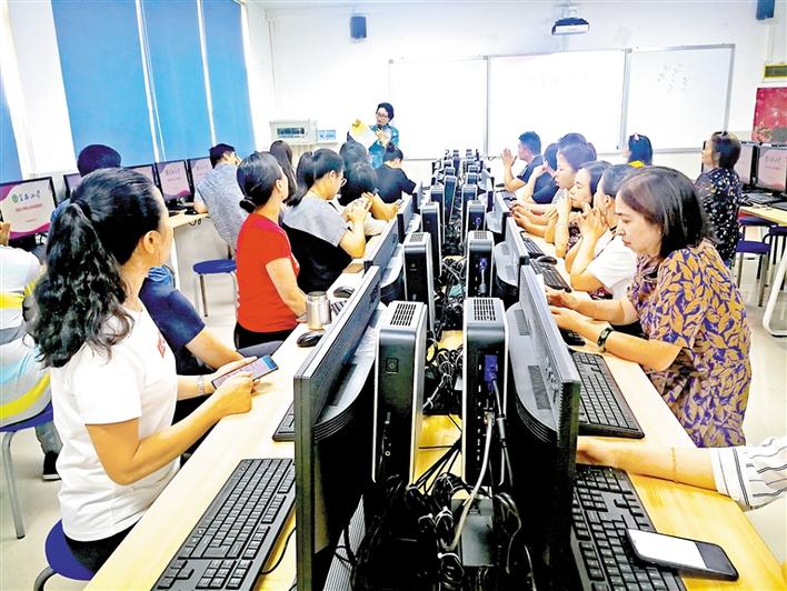 寶安小學(xué)高級會計師李麗組織教師進行內(nèi)控信息化系統(tǒng)實操培訓(xùn)。