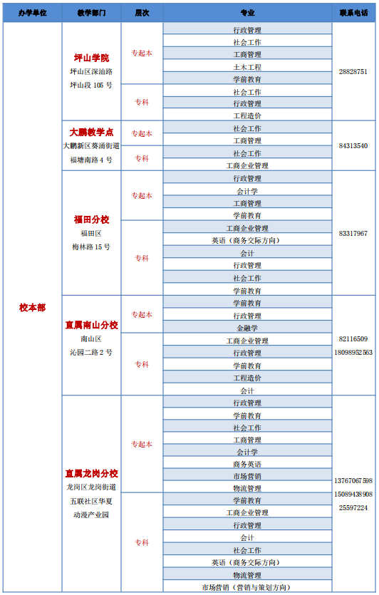 深圳開放大學(xué)2021年春季招生教學(xué)點(diǎn)與專業(yè)公示