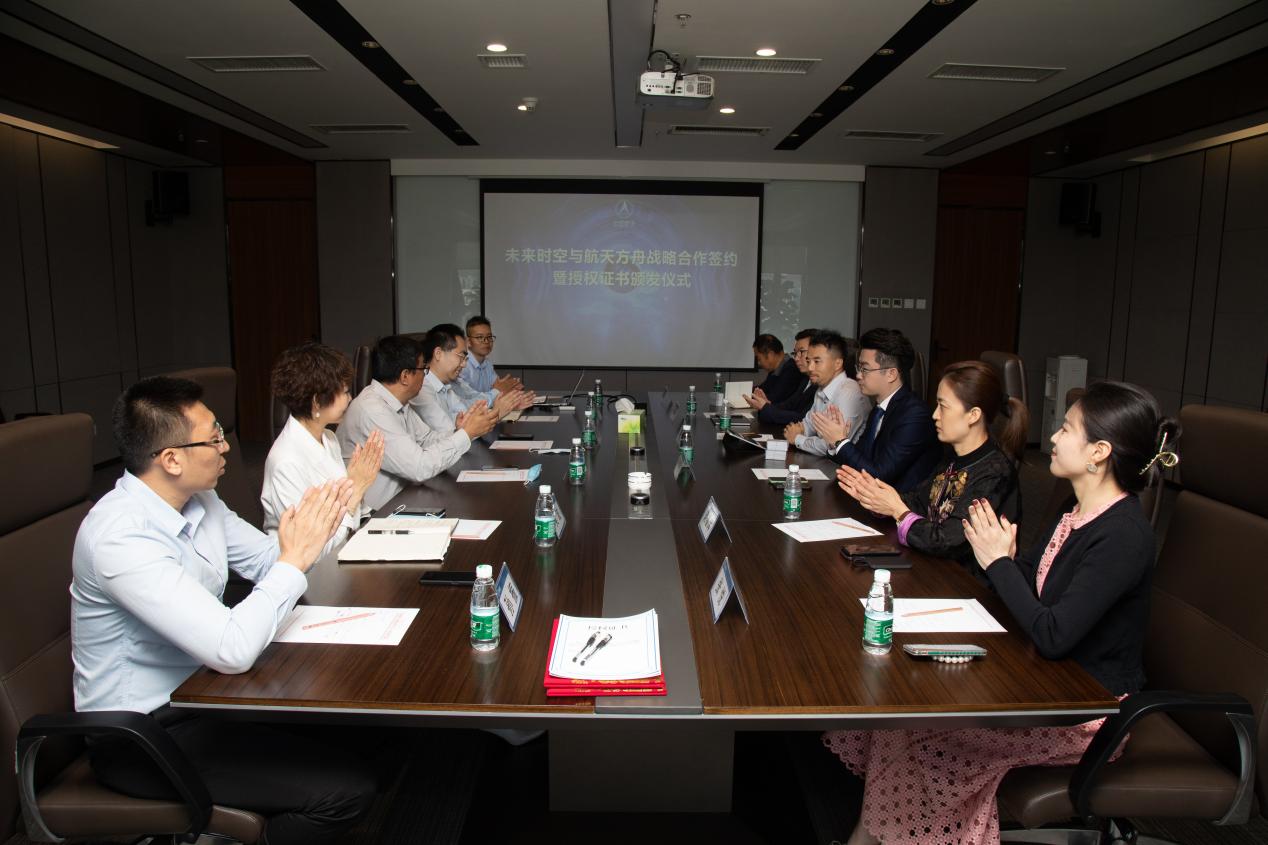 見圳客戶端·深圳新聞網(wǎng)2021年5月31日訊 (記者 陳彬)為深入推進(jìn)航天科技文化技術(shù)在社會(huì)生活、人民健康、科普教育、素質(zhì)教育和文化產(chǎn)業(yè)等領(lǐng)域的成果轉(zhuǎn)化和廣泛應(yīng)用,在中國航天系統(tǒng)科學(xué)與工程研究院有關(guān)領(lǐng)導(dǎo)的關(guān)心幫助下,未來時(shí)空(深圳)文化產(chǎn)業(yè)有限公司和北京航天方舟空間技術(shù)有限公司就航天文創(chuàng)產(chǎn)品開發(fā)、航天康養(yǎng)項(xiàng)目建設(shè)、航天科普教育及商業(yè)化航天器應(yīng)用等方面達(dá)成了全面合作,于5月28日上午在北京簽署戰(zhàn)略合作協(xié)議并頒發(fā)授權(quán)證書。