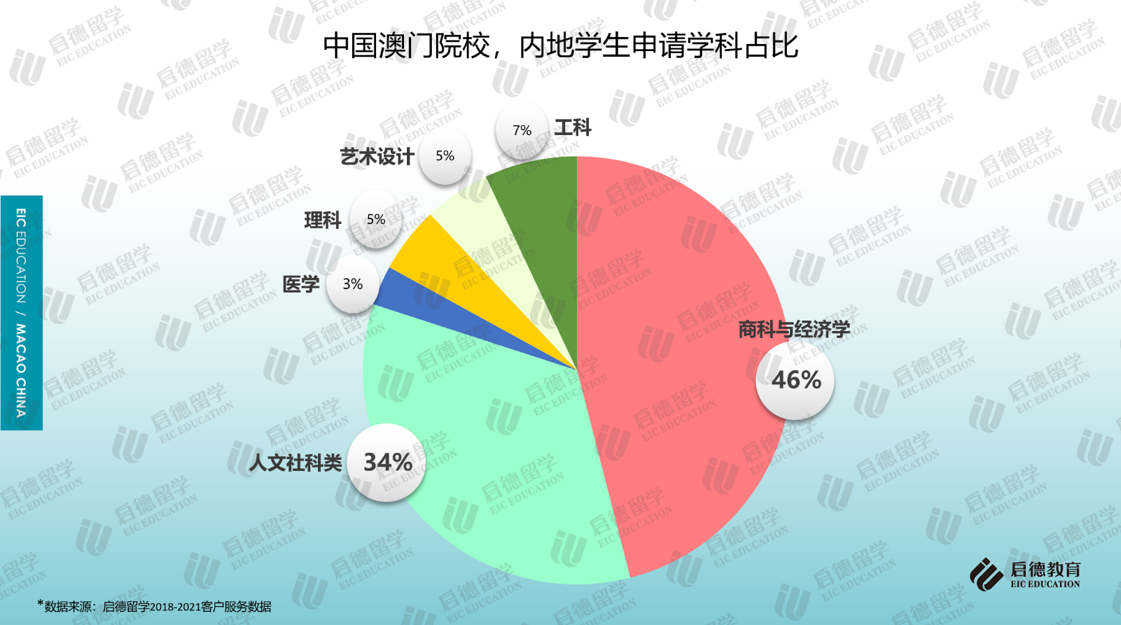 啟德留學(xué)2018-2021客戶服務(wù)數(shù)據(jù)顯示,商科與經(jīng)濟(jì)學(xué)(46%)、人文社科類(34%)、理工科(12%)在澳門高校的申請(qǐng)占比位居前三。在商科與經(jīng)濟(jì)學(xué)的細(xì)分專業(yè)中,工商管理、旅游與酒店管理、會(huì)計(jì)的申請(qǐng)占比超過6成;在人文社科類的細(xì)分專業(yè)中,傳媒、法學(xué)、語言學(xué)的申請(qǐng)占比超過6成;電子與計(jì)算機(jī)(55%)成為理工科選擇最多的專業(yè)。作為澳門求學(xué)的主要學(xué)科,澳門院校的商科碩士專業(yè)對(duì)GMAT/GRE考試不作硬性要求。