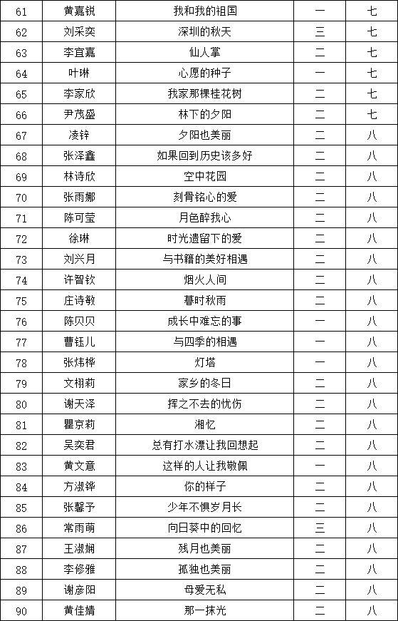 自2021年1月,活動征稿啟動以來,獲得了深圳市廣大中小學(xué)生、教師、文學(xué)愛好者的熱烈響應(yīng)積極參與,吸引了深圳百余所學(xué)校的上萬人關(guān)注報名?,F(xiàn)公布南二外(集團(tuán))赤灣學(xué)校晉級復(fù)賽名單如下: