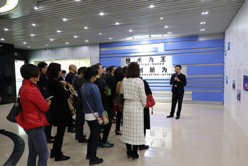 1月13日,在結(jié)束當(dāng)天的課程后,石青同學(xué)作為領(lǐng)隊(duì),帶著北大匯豐EMBA1617班幾十位同學(xué)來(lái)到深圳市龍崗區(qū)華南城傲基電子商務(wù)股份有限公司參訪交流。