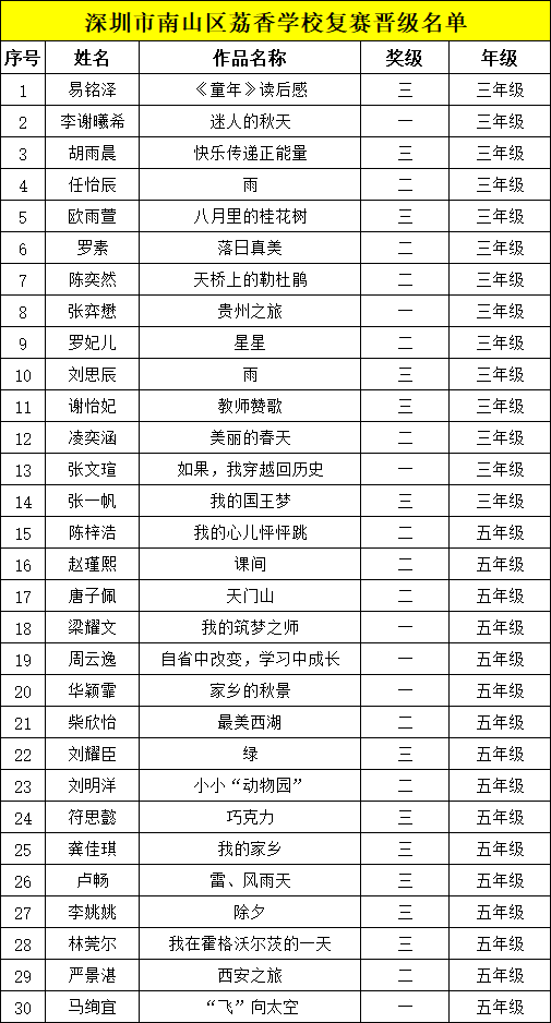 冰心文學盛典 | 南山區(qū)荔香學校晉級復賽名單公布