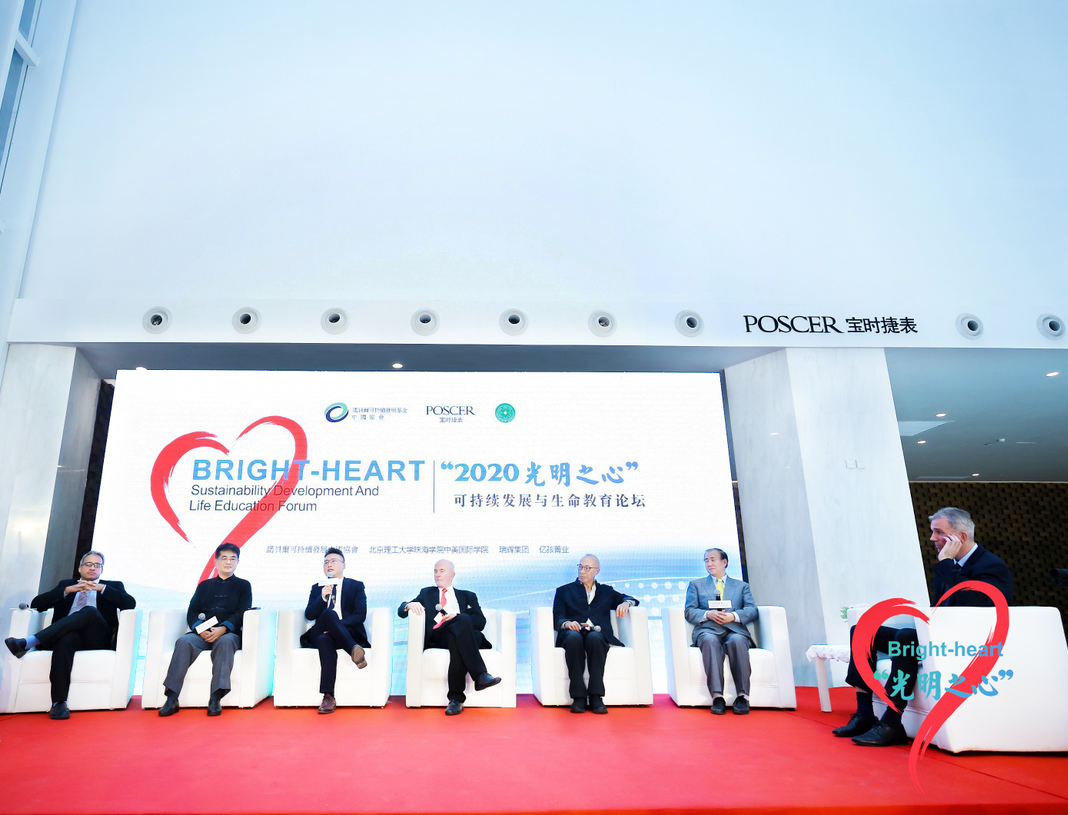 隨后,邁克爾·諾貝爾、沙勝昔、任廣斌會長、郭少棠院長、Marcus Theodore Anthony教授等嘉賓上臺落座,暢談自身對于可持續(xù)的理解。沙勝昔從踐行環(huán)境保護、企業(yè)發(fā)展、人才培養(yǎng)及履行社會責任等方面闡述了他本人對可持續(xù)發(fā)展和生命教育的理解。