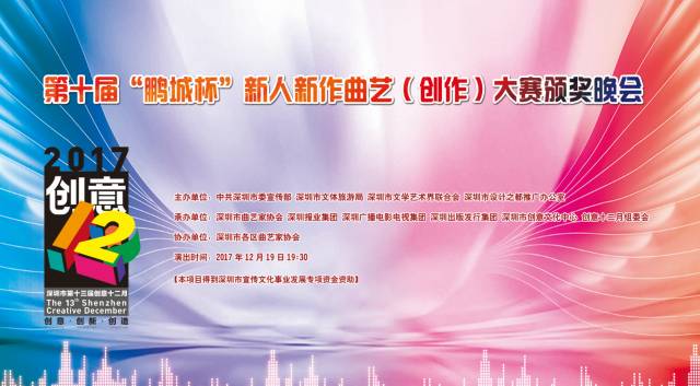 深圳市“鵬城杯”新人新作曲藝大賽作為深圳市文學(xué)藝術(shù)界聯(lián)合會重點(diǎn)長效品牌活動和“創(chuàng)意十二月”活動之一,得到省、市相關(guān)部門領(lǐng)導(dǎo)的重視和大力支持,至今已成功舉辦九屆,大賽分為創(chuàng)作和表演兩種形式輪流舉辦,2017年為創(chuàng)作大賽。