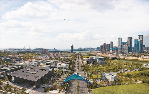深圳將加快前海深港合作區(qū)和前海蛇口自貿(mào)片區(qū)開發(fā)開放,努力構(gòu)建更高水平的開放型經(jīng)濟(jì)新體制。圖為前海深港合作區(qū)俯瞰。(深圳報(bào)業(yè)集團(tuán)資料圖)