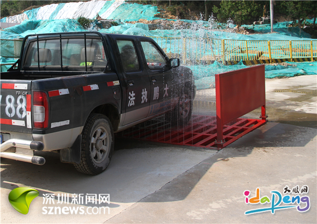 每架車輛進(jìn)入工地前必須先“下水洗澡”