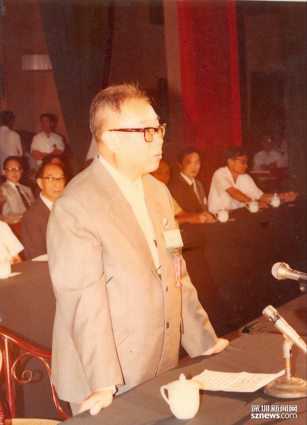 1983年9月27日,深圳大學(xué)成立暨首屆開學(xué)典禮大會(huì)在深圳戲院隆重舉行,首任校長(zhǎng)張維在開學(xué)典禮上致辭。(資料圖片,由深圳大學(xué)提供)