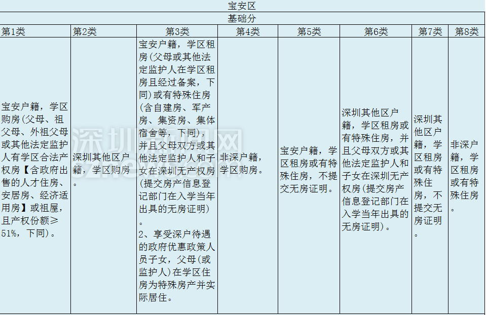 寶安公辦學(xué)校采取“先類別后積分”錄取制度,按照從第1類到第8類依次錄取,同一類學(xué)生則按照積分從高到低錄取,公辦學(xué)校招生計劃錄滿為止。