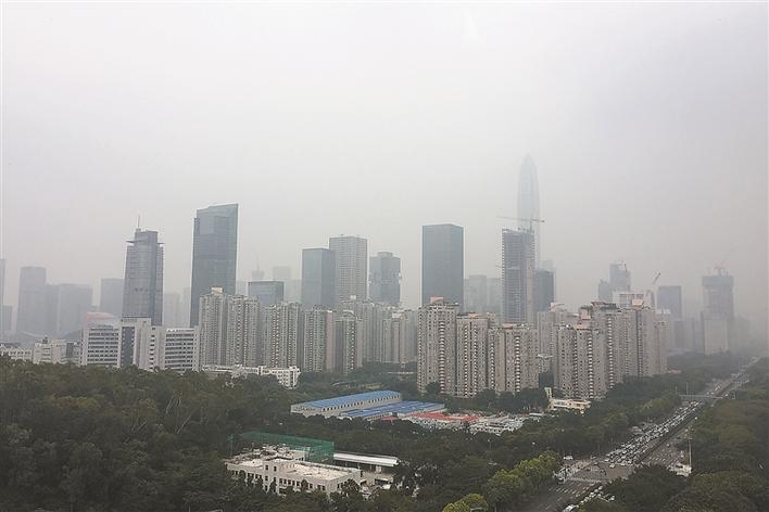 ▲深圳昨現(xiàn)灰霾天。 深圳晚報 見習記者 楊少昆 攝