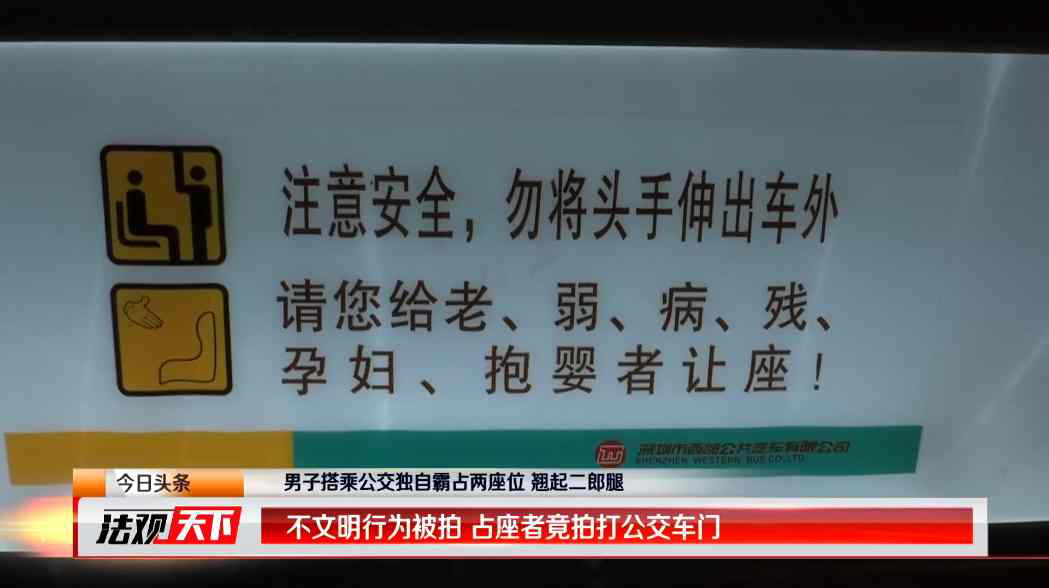深圳一男子坐公交車翹二郎腿占兩座, ...