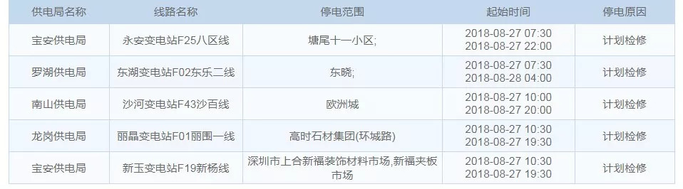 8月27日停電區(qū)域