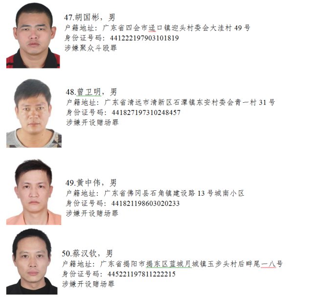近日,省掃黑除惡辦和省公安廳聯(lián)合公開懸賞50名在逃黑惡勢力犯罪嫌疑人,經(jīng)查證屬實并予以抓獲的,獎勵人民幣1-5萬元不等。見到下面這50名在逃黑惡勢力犯罪嫌疑人,請果斷舉報!