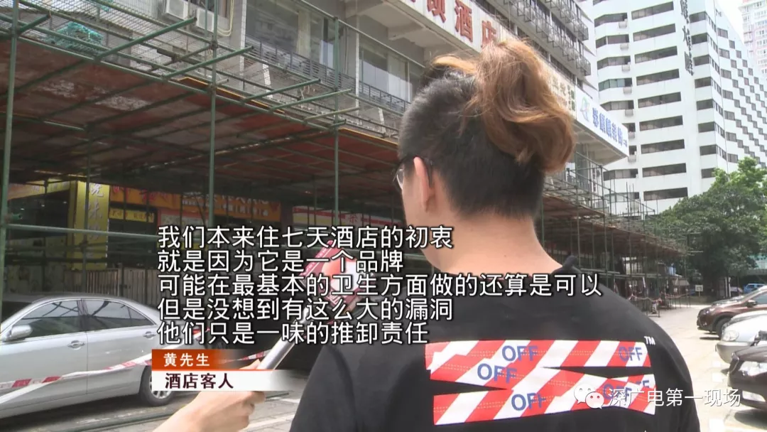 記者在酒店大堂的墻壁上,也看到了黃先生提供給記者的視頻中一模一樣的蟲子。洗衣機(jī)就隨意擺放在過(guò)道。黃先生還說(shuō),本以為7天酒店是一個(gè)連鎖大品牌,但這實(shí)際的環(huán)境和態(tài)度都讓他十分失望。