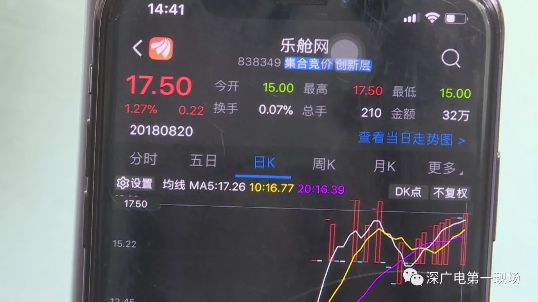 按照劉某的說法,張女士以每股15塊錢購得了3萬股原始股,并可以隨時回籠資金,今天記者登錄股票交易賬戶,查詢到張女士購入的這支“樂艙網(wǎng)”股票,此前一直走勢較低,在張女士買入當天,股價才有了上漲。