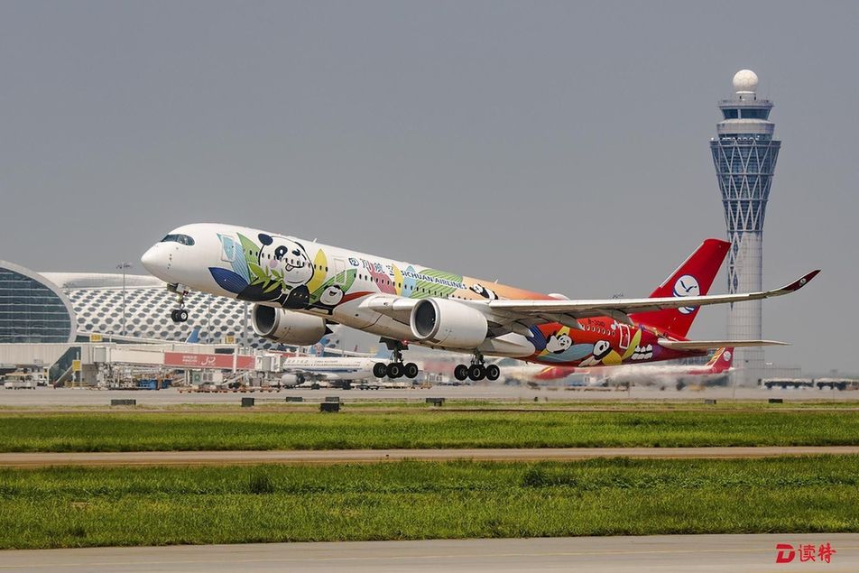 原標(biāo)題:川航A350飛機(jī)首秀深圳 “熊貓彩繪”驚艷深圳機(jī)場