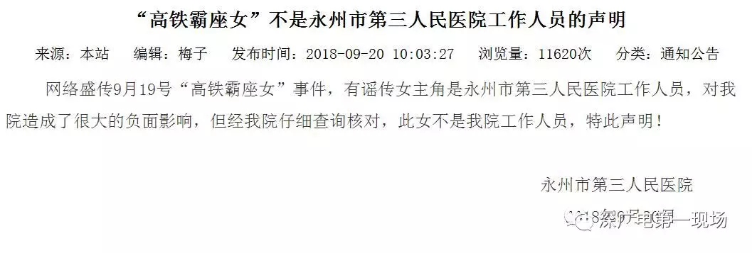 記者在永州市第三人民醫(yī)院官方網(wǎng)站看到,醫(yī)院已對此事發(fā)表了聲明通知,“謠傳女主角是永州市第三人民醫(yī)院工作人員,對我院造成了很大的負(fù)面影響,但經(jīng)我院仔細(xì)查詢核對,此女不是我院工作人員”。