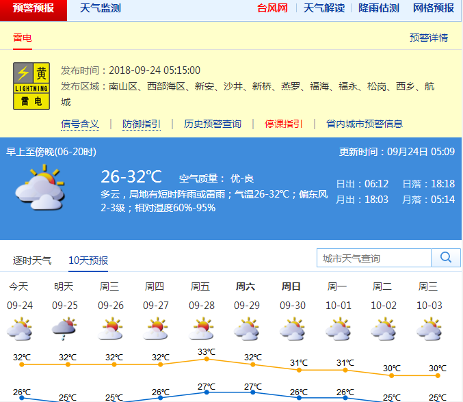9月24日05:15分,深圳市氣象臺發(fā)布雷電黃色預警信號