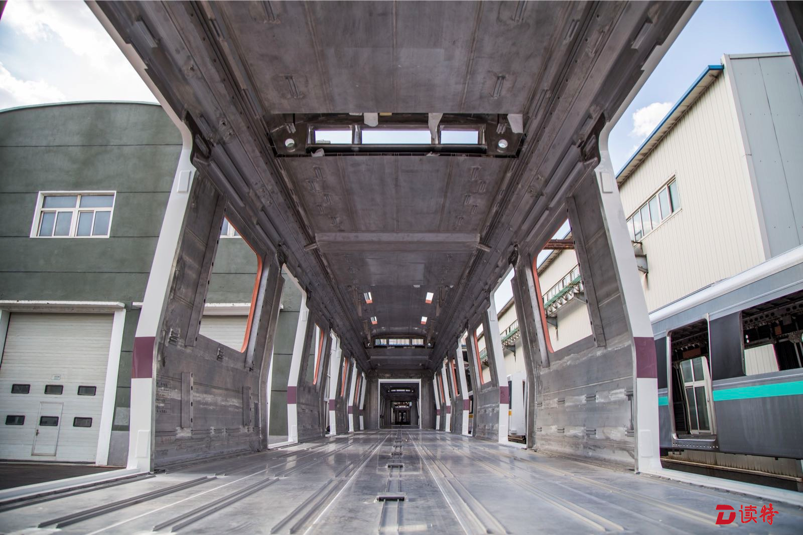 在中國(guó)中車(chē)長(zhǎng)春軌道客車(chē)有限公司廠區(qū),深圳地鐵9號(hào)線西延線訂購(gòu)的地鐵列車(chē)車(chē)身采用更為堅(jiān)固耐用的鋁型材。