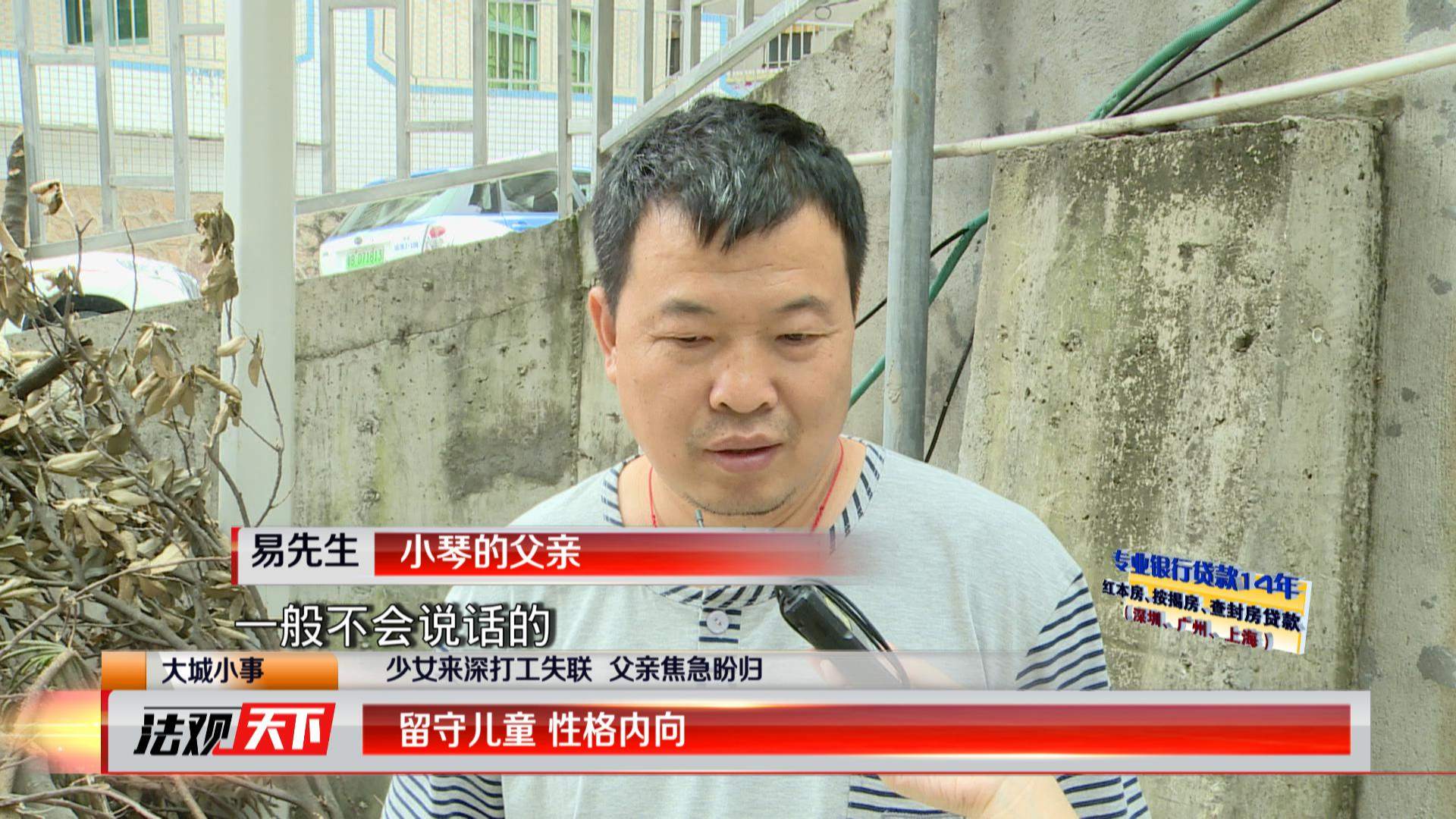 與小琴一起失蹤的還有小海,小海今年才14歲,是小琴的初中同學(xué),兩人當初是一起從邵陽逃學(xué)來到深圳的。小海和小琴來到深圳后,跟易女士進了同一家工廠。9月30號晚上,正是易女士最先發(fā)現(xiàn)兩個女孩失蹤的。她告訴記者,此前兩個孩子一直都很正常。女兒突然不辭而別,至今十多天沒有跟家人聯(lián)系,她既擔(dān)心又不解。小海的母親易女士告訴記者,這么多年以來,都是小海的奶奶把她帶大的。自己一直在外面打工掙錢,覺得小海跟她的感情也不深。